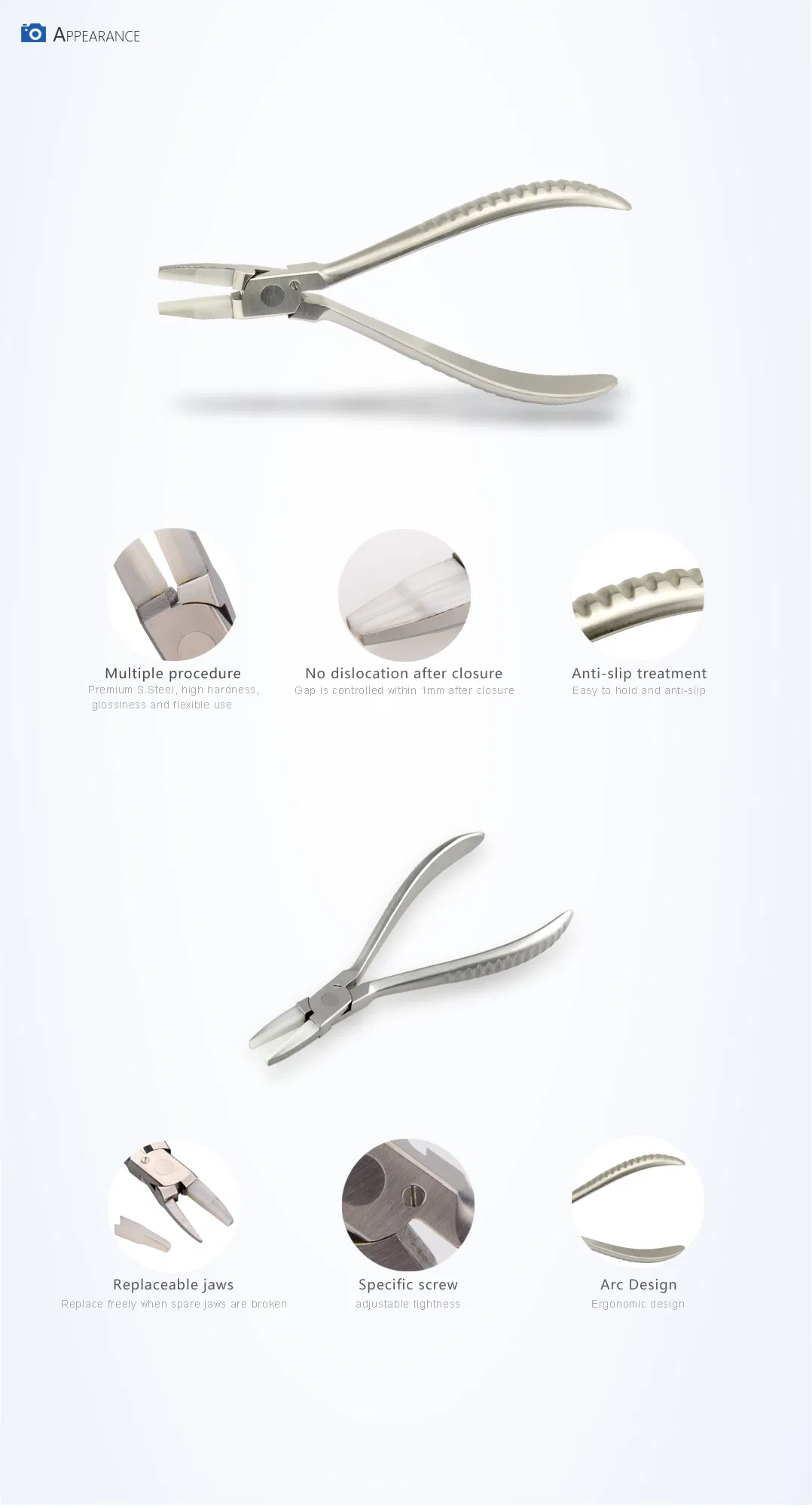 Home > Products > Hand Tool Set > Multi-Purpose Adjusting Optical Pliers with Wide Plastic Head 155mm