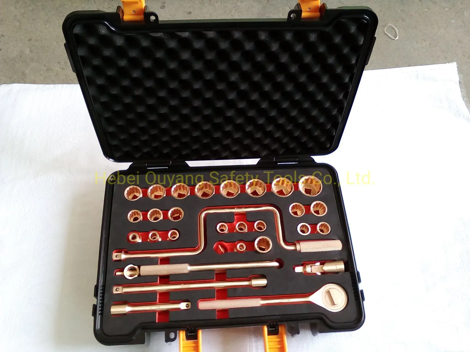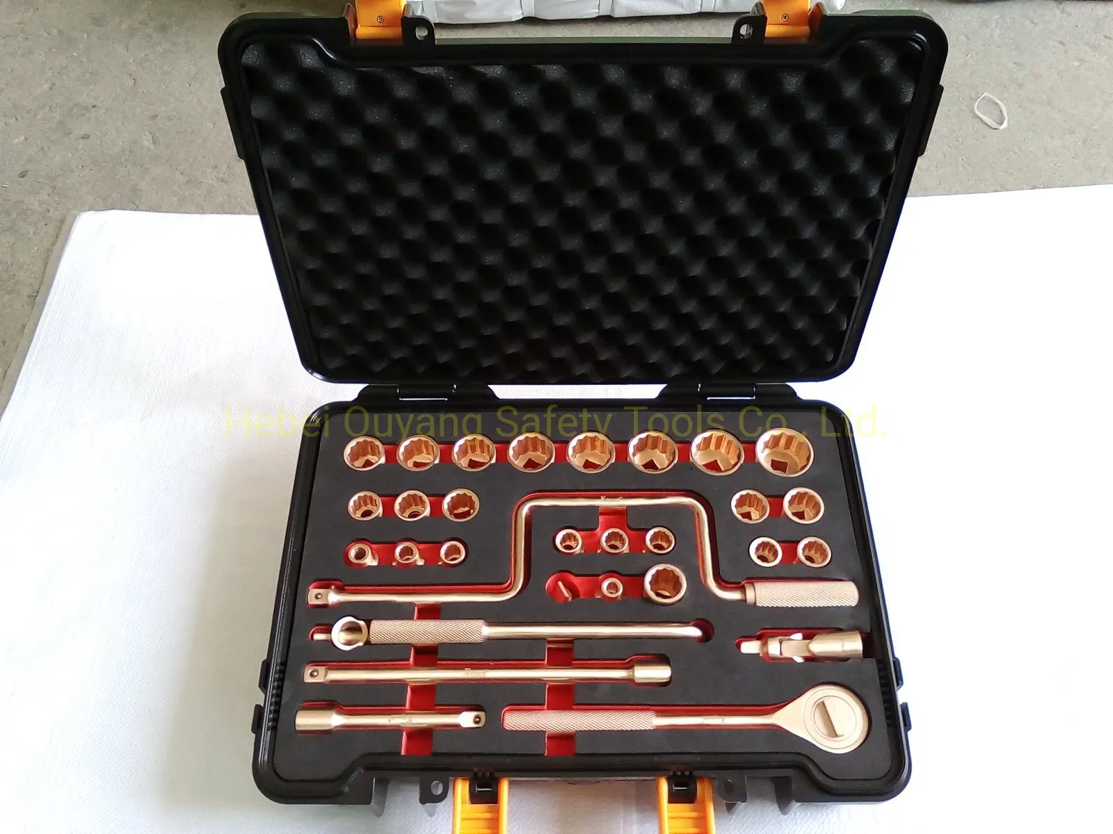 Non-Sparking Tools Socket Sets 1/2" Drive 32Pcs Be-Cu ATEXNon-sparking Non-magnetic;Copper Beryllium (Be-Cu) or Aluminum Bronze(Al-Cu);ATEX Zones 1, 2, 20, 21 & 22;ATEX Rated Ex GB II C;Non-Sparking, Non-Magnetic, Corrosion-Resistant Made in China CodeSpecsOY6101JSocket 8mm,9mm,10mm,11mm,12......
