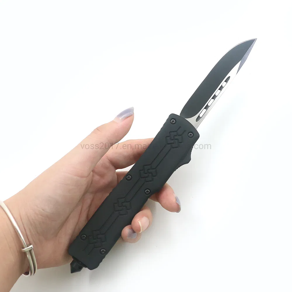 Full length: 225mm (8.85in) Blade length: 86mm (3.38in) Handle: 137mm (5.39in) Blade thickness: 3mm (0.118in) Blade material: 440 Hardness: 55-57HRC Handle material: zinc aluminum alloy Net weight: 190g Accessories: nylon sleeve